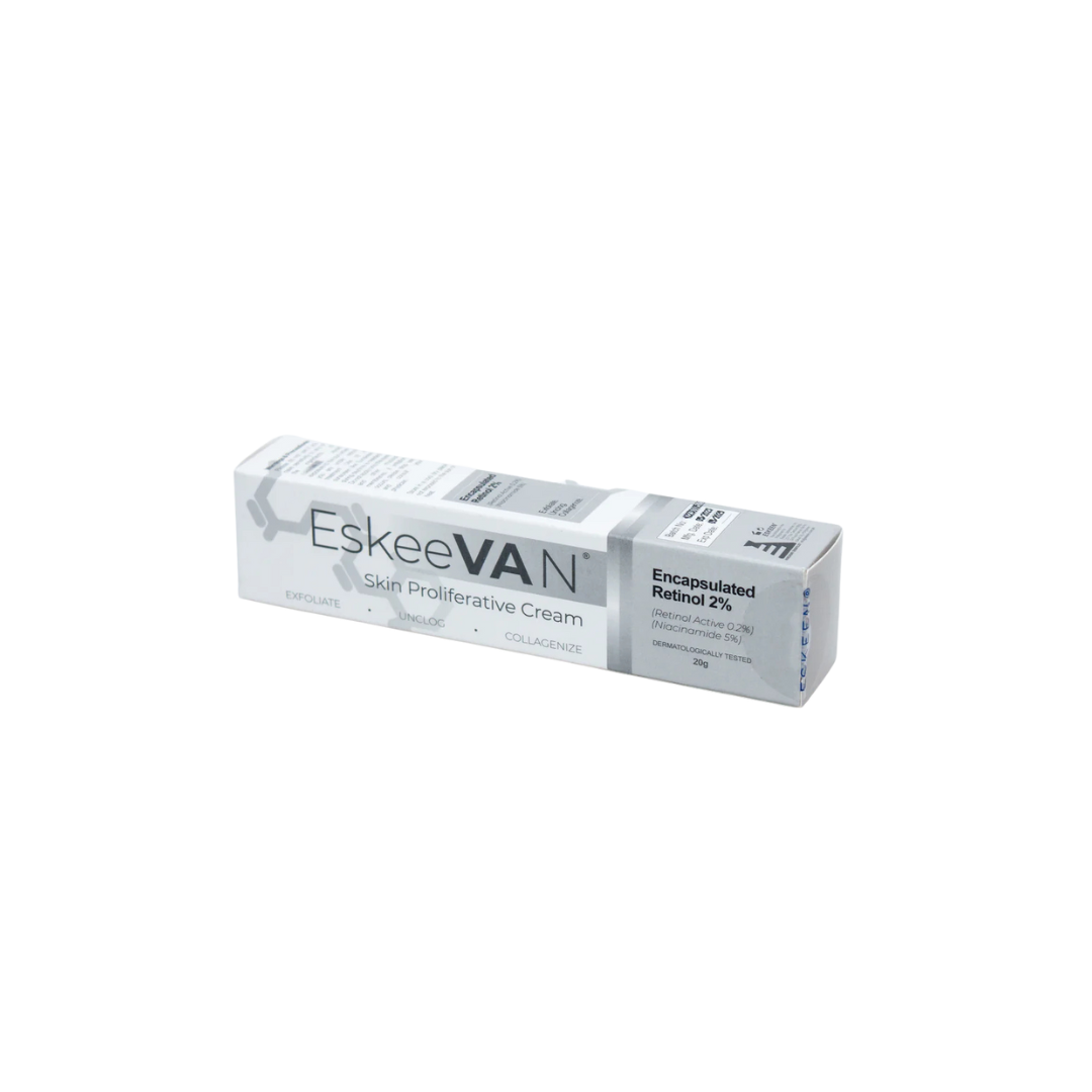 EskeeVA N is a skin cream with microencapsulated retinol (spherulite) and niacinamide, offering anti-aging, barrier protection, and prolonged moisturization for smoother, younger-looking skin, helping with texture, fine lines, and hydration by promoting cell turnover and retaining moisture. Key benefits include advanced retinol delivery, barrier strengthening, and long-lasting moisture through its unique blend of ingredients like Nikkomulese 41, making it effective for aging, acne-prone, and sensitive skin.